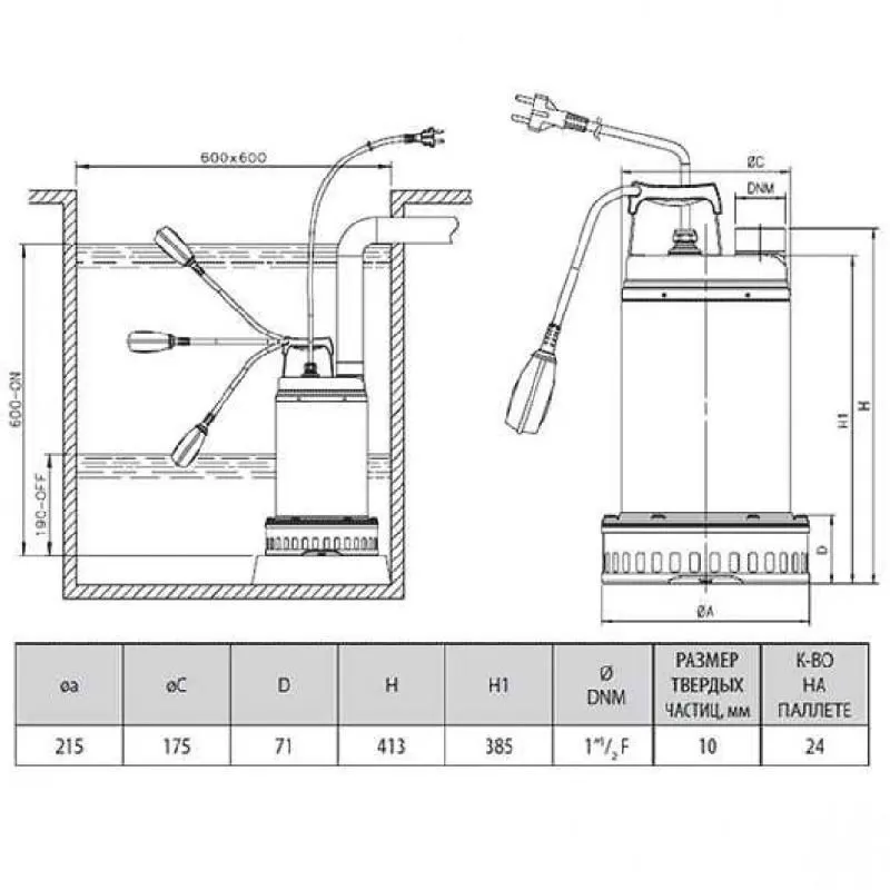 Схема дренажного насоса DAB DRENAG 1200 M-A