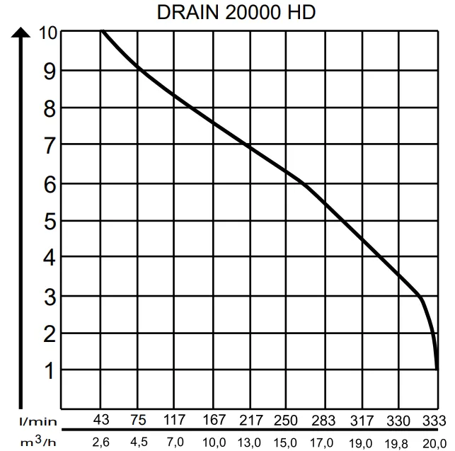 Графические характеристики дренажного насоса AL-KO DRAIN 20000 HD