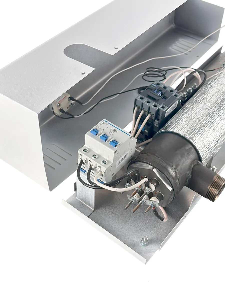 Безопасность: Встроенный термостат автоматически отключает ТЭНы при достижении заданной температуры, предотвращая перегрев системы. Не требует постоянного контроля.