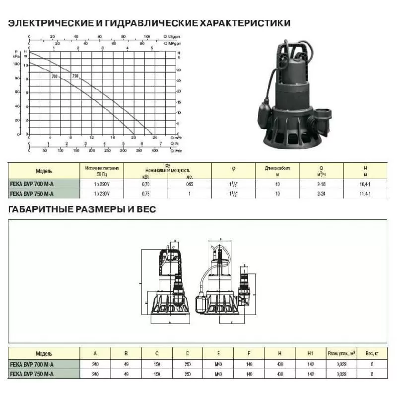 Схема фекального насоса DAB FEKA BVP 750 M-A