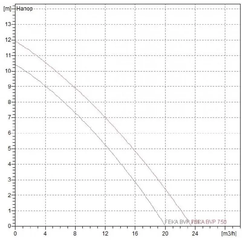 Графические характеристики фекального насоса DAB FEKA BVP 750 M-A