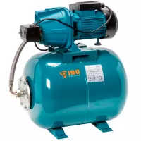 Одноступенчатая, самовсасывающая, насосная станция от Польского производителя IBO JET 100A TF 50л, оснащенный системой, увеличивающей мощность всасывания благодаря использованию трубки Вентури, предназначен для перекачивания чистой, холодной воды из собственных водозаборов и повышения давления. Максимальный забор воды до 8 метров, максимальный напор гидрофора 50 м, максимальна производительность 3.6 м³/час. При этом насосная станция обладает сравнительно не большой мощностью 1100 Вт. На насосной части установлена система автоматики на базе реле давления, защита от работы без воды в насосе нет. Насос установлен на баке объемом 50 л, которы предохраняет насос частых включений / отключений и компенсирует гидроудар в системе водоснабжения. Корпус насоса изготовлен из прочного чугуна, а двигатель оснащен тепловой защитой. Насос имеет шнур питания с вилкой 0.5 м. Насос также доступен с аксессуарами или в гидрофорном комплекте.