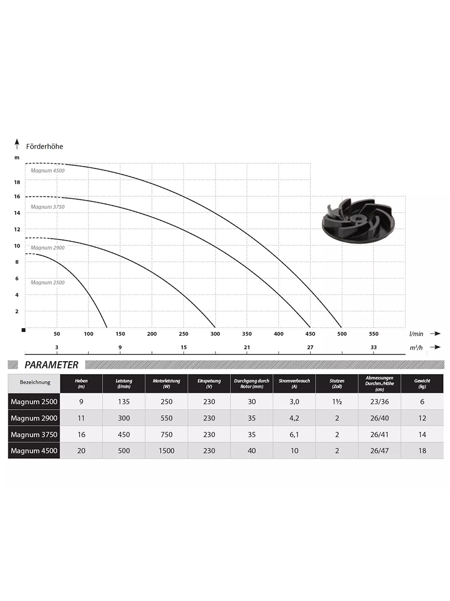 Графические характеристики фекального насоса IBO MAGNUM 2900