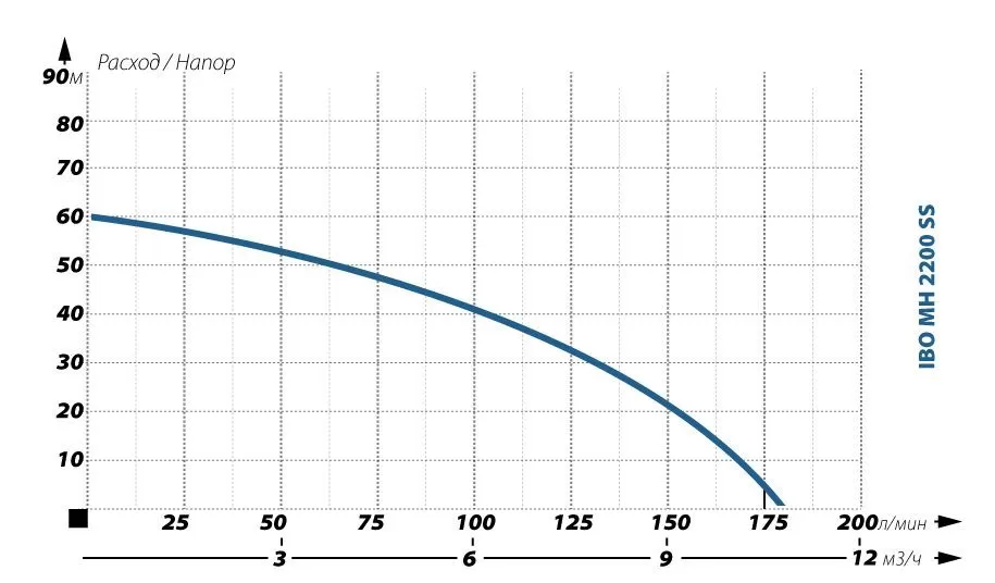 Графические характеристики поверхностного насоса IBO MH 2200 INOX