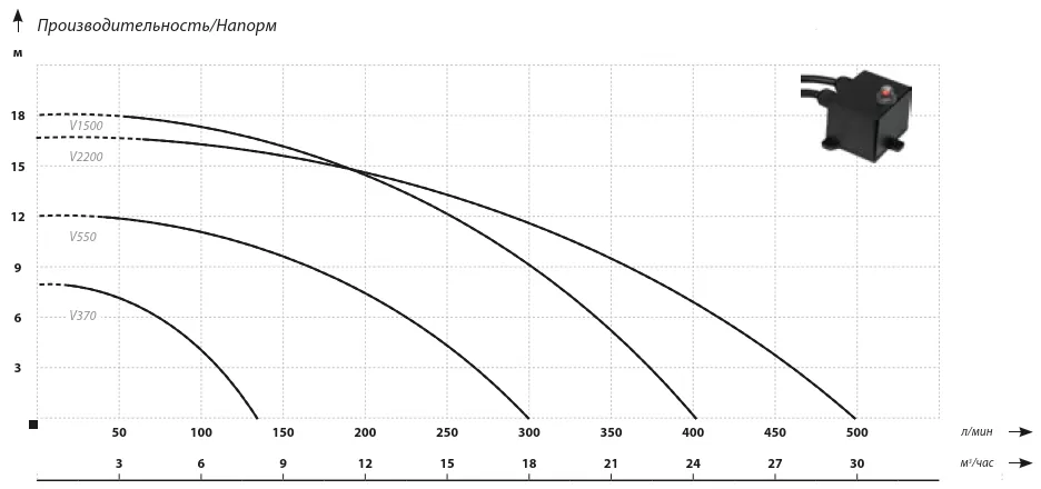 Дополнительные функции включают поплавковый выключатель, который автоматически включает или отключает насос при изменении уровня перекачиваемой жидкости. Такая функция может быть полезна для автоматического контроля уровня жидкости в резервуаре или скважине. Также отмечается наличие блока аварийного отключения в случае разрыва силового кабеля. Это дополнительная безопасностная функция, которая предотвращает возможные аварийные ситуации при разрыве кабеля.