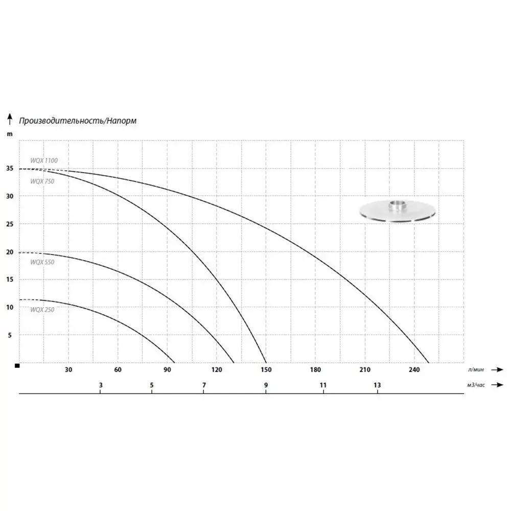 Графические характеристики дренажного насоса IBO WQX 1100