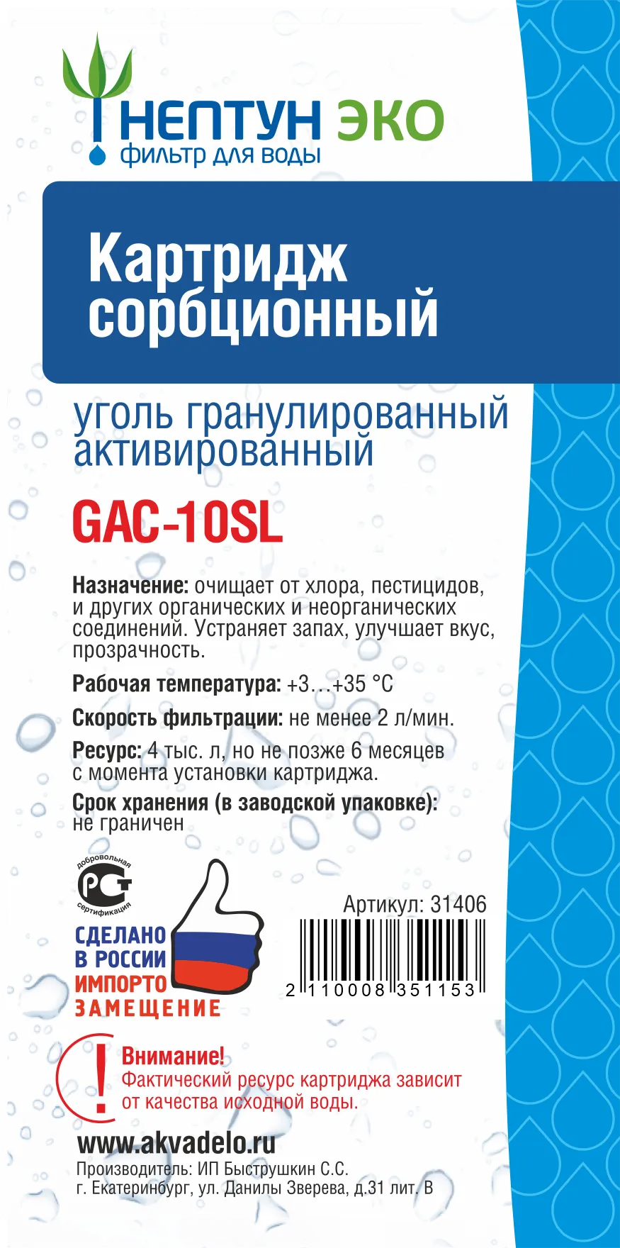 Картридж c активированным углём Нептун ЭКО GAC-10SL