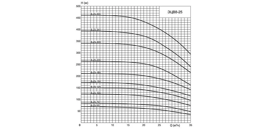 Графические характеристики ЭЦВ 8-25-90н