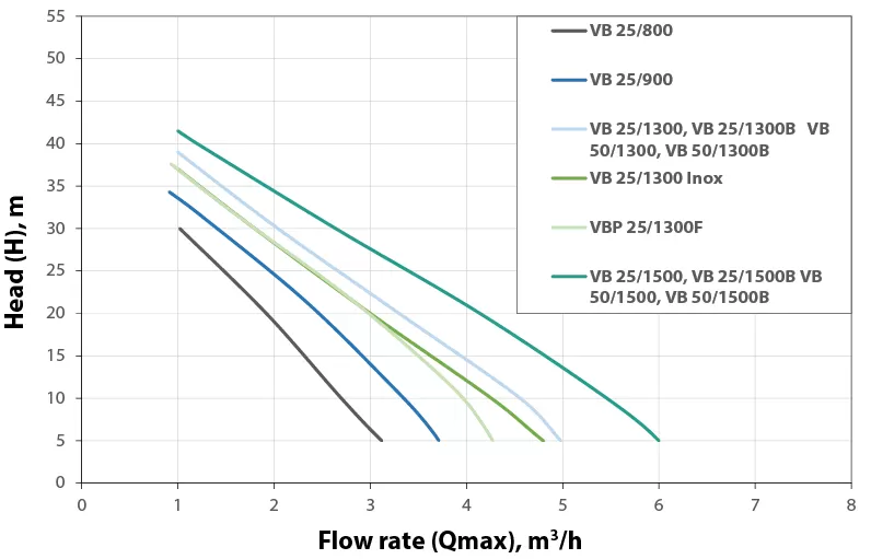 Графические характеристики насосной станции Elpumps VB 25/1300