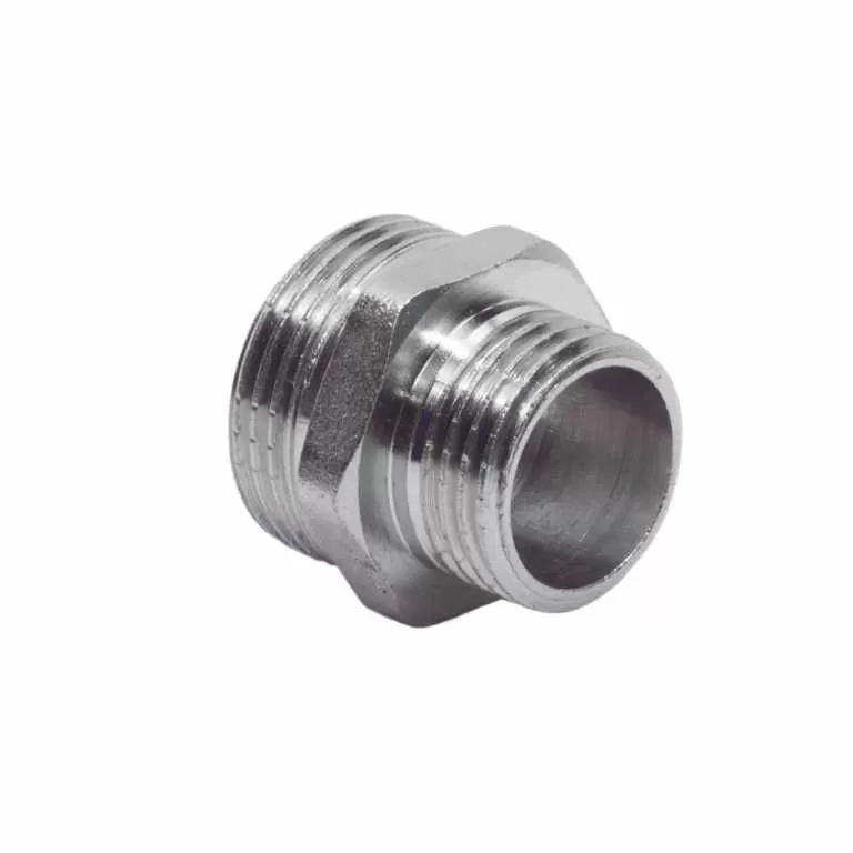 Ниппель переходной AQUALINK 3/4"М х 1 1/2"М – специальный соединительный элемент, цилиндр, на два конца которого снаружи нанесена резьба, что предусматривает монтирование системы путем вкручивания, используются для создания разъемных резьбовых соединений на трубопроводах холодного питьевого, хозяйственного и горячего водоснабжения, отопления, сжатого воздуха и на технологических трубопроводах, транспортирующих газы и жидкости, неагрессивные к материалу соединителей. Посередине данной конструкции для удобства присоединения предусмотрена шестигранная гайка, поэтому монтаж легко можно осуществить с помощью обычного гаечного ключа. Резьбовое присоединение ниппелей характерно для соединения в тех местах, где предусмотрена неоднократная разборка конструкции или же исключена работа с открытым пламенем. Применяется для соединения деталей трубопроводов с разной резьбой или для перехода с большей резьбы на меньшую.