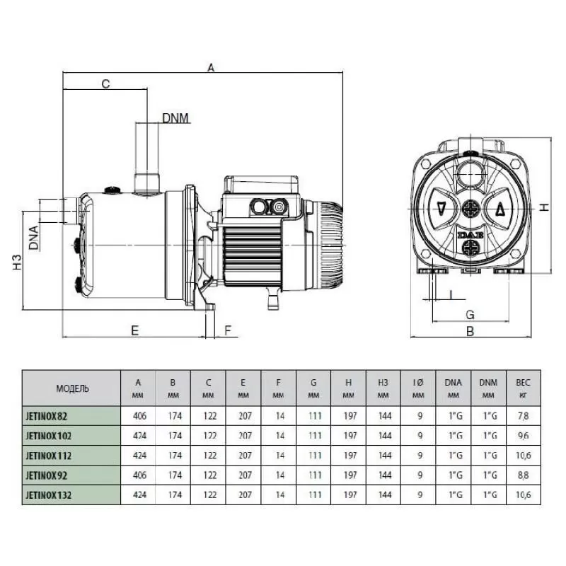 Поверхностный насос DAB JETINOX 82 T - самовсасывающий центробежный насос с отличной всасывающей способностью даже при наличии пузырьков воздуха. Особенно подходит для водоснабжения в бытовых установках, малом сельском хозяйстве, садоводстве и в случаях необходимости самовсасывания. Jetinox: корпус насоса – нержавеющая сталь. Опора двигателя – чугун, рабочее колесо, диффузор, трубка Вентури и защита от песка – технополимер.