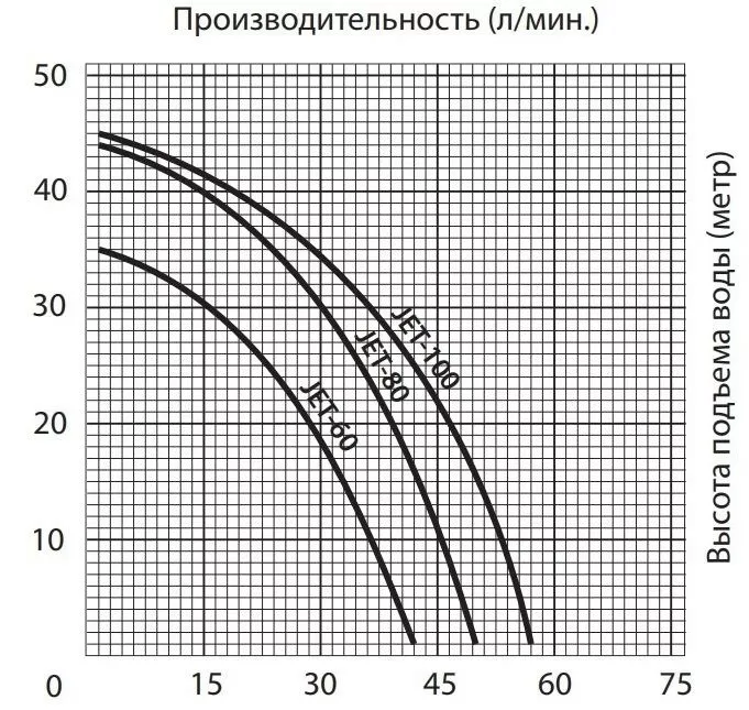 Надежное водоснабжение - это ключ к комфорту и удобству в современном доме, и насос JET-100 станет надежным спутником в вашей системе водоснабжения. С мощностью 750 Вт, этот насос обеспечивает стабильное и эффективное функционирование, гарантируя надежное водоснабжение вашего дома. Максимальный напор насоса составляет внушительные 45 метров, что делает его идеальным для домов с несколькими этажами и других объектов, где требуется подача воды на большие высоты. Максимальный расход воды составляет 3.3 м³/час, обеспечивая достаточное количество воды для бытовых нужд .