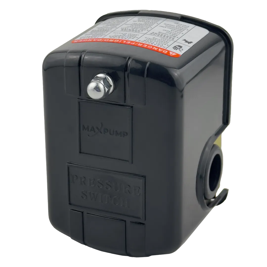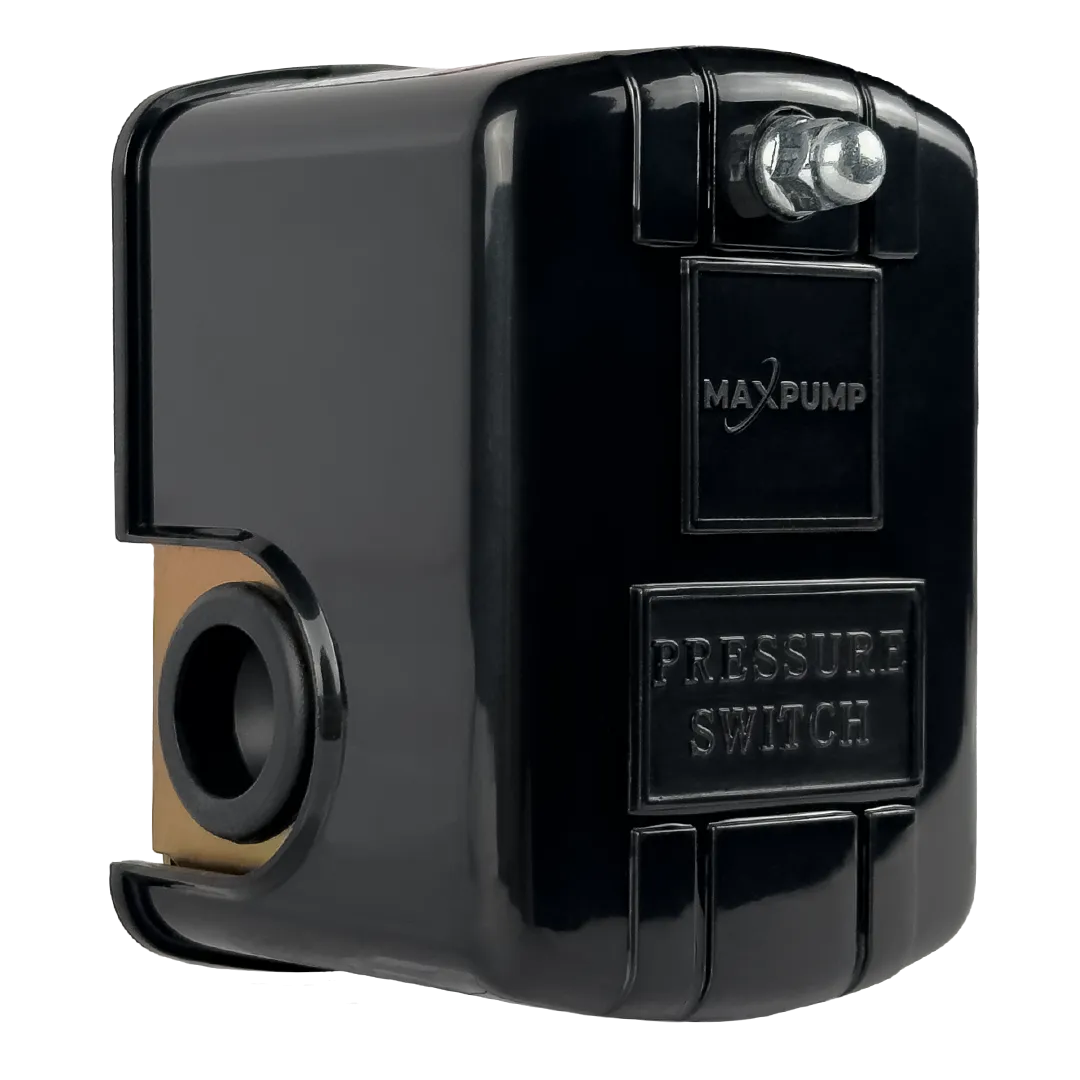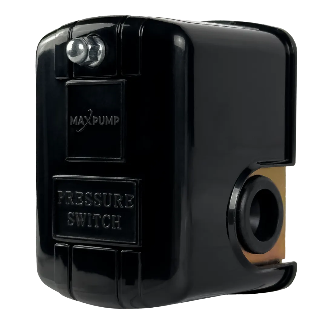 Однофазный реле давления MAXPUMP PS-02 с тремя 1-дюймовыми точками подключения, простой установкой, без необходимости установки фитинга непосредственно на выходе насоса, а также возможностью подключения садового штифта и гидрофобного резервуара. Реле давления насоса фиксирует падение водяного давления и в момент достижения порога включения реле включает насос. После этого мембранный бак начинает наполняться водой, давление увеличивается, и, при достижении порога выключения, реле давления отключает насос. Заводские настройки по умолчанию могут быть изменены от 1 до 5 бар, в зависимости от того, включены ли они и выключены от 1 до 0 бар.