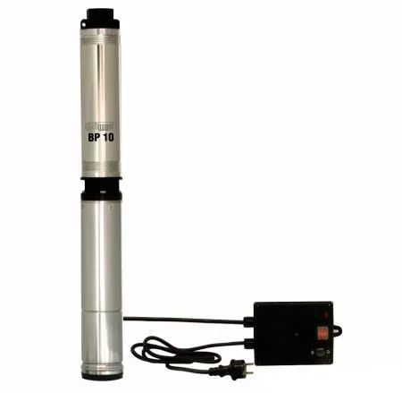 Глубинный насос ELPUMPS BP10 предназначен для забора воды из скважин, шахтных колодцев, накопительных резервуаров или открытых водоемов. Производительность насоса - 75 л/мин, что соответствует стандарту бытового водоснабжения. Механизм помпы состоит из 10 рабочих колес из высокопрочного полимера NORYL, благодаря чему насос способен развивать давление до 6 бар. Забор воды осуществляется в центральной части корпуса, между двигателем и блоком импеллеров, что позволяет избежать засасывания в механизм донного ила. Допускается использование насоса для работы только с чистой водой, максимальное содержание твердых частиц в которой не превышает 40г/куб.м. Рекомендуемая температура воды - от 0 до 35°С - позволяет обеспечить нормальное охлаждение двигателя, на случай превышения температурного лимита, в корпус встроено защитное термореле. Скважинный насос выполнен в прочном и химически инертном корпусе из нержавеющей стали, благодаря чему компоненты устройства надежно защищены от воздействия внешней среды. Кожух двигателя гидроизолирован по стандарту IPX8 и соответствует 1 классу электрозащиты. В верхней части корпуса расположены отверстия для крепления монтажного троса.