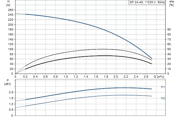 Графические характеристики Grundfos SP 2A-40