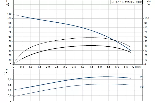 Насос Grundfos SP 5A-17 создан с применением новейших гидравлических технологий. Grundfos SP 5A-17 созданные специально для того, чтобы обеспечивать максимальную эффективность в периоды высокой нагрузки, насос имеет низкую стоимость и высокую надёжность эксплуатации вне зависимости от вида назначения. Grundfos SP 5A-17 обеспечивает высокую эффективность, высокое сопротивление абразивному износу (песку и иным абразивам), защиту от перегрева двигателя и простоту технического обслуживания. Также доступна готовая к применению система контроля и управления, предназначенная для постоянной оптимизации работы насосной системы. Максимальная производительность насоса 7 м3/час, максимальный напор 110 м при мощности электродвигателя 1500 Вт. Насос работает от сети 220 в. Гарантийный срок на насос Grundfos SP 5A-17 составляет 2 года.