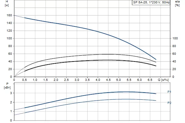 Насос Grundfos SP 5A-25 создан с применением новейших гидравлических технологий. Grundfos SP 5A-25 созданные специально для того, чтобы обеспечивать максимальную эффективность в периоды высокой нагрузки, насос имеет низкую стоимость и высокую надёжность эксплуатации вне зависимости от вида назначения. Grundfos SP 5A-25 обеспечивает высокую эффективность, высокое сопротивление абразивному износу (песку и иным абразивам), защиту от перегрева двигателя и простоту технического обслуживания. Также доступна готовая к применению система контроля и управления, предназначенная для постоянной оптимизации работы насосной системы. Максимальная производительность насоса 7 м3/час, максимальный напор 160 м при мощности электродвигателя 2200 Вт. Насос работает от сети 220 в. Гарантийный срок на насос Grundfos SP 5A-25 составляет 2 года.