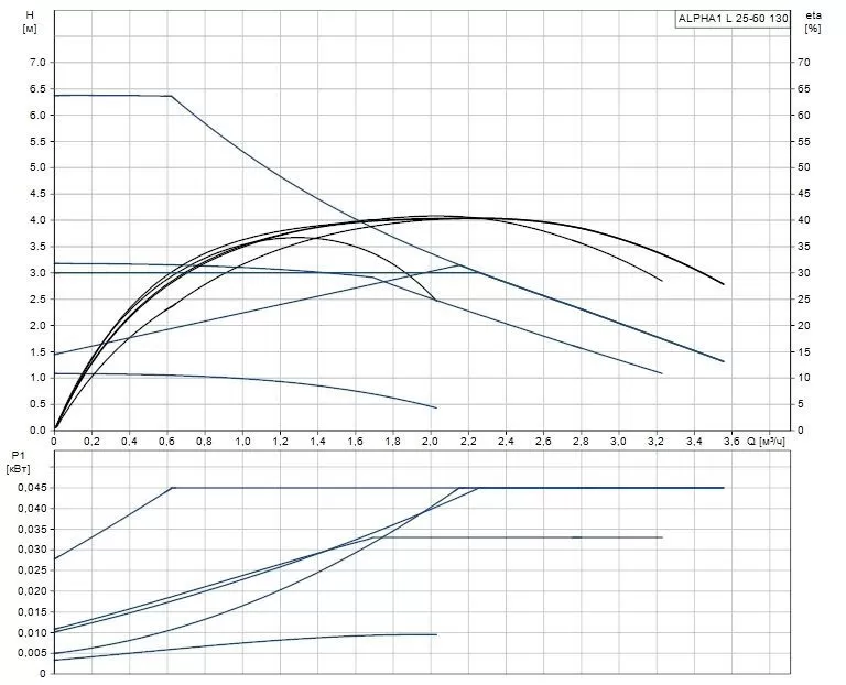 Циркуляционный насос Grundfos ALPHA1 L 25-60 130 используется для циркуляции воды или гликольсодержащих жидкостей в регулируемых системах отопления и в системах отопления с переменным расходом. Режимы работы насоса: 3 фиксированные скорости, 2 режима постоянного давления, 2 режима пропорционально давления и режим управления по ШИМ-сигналу.