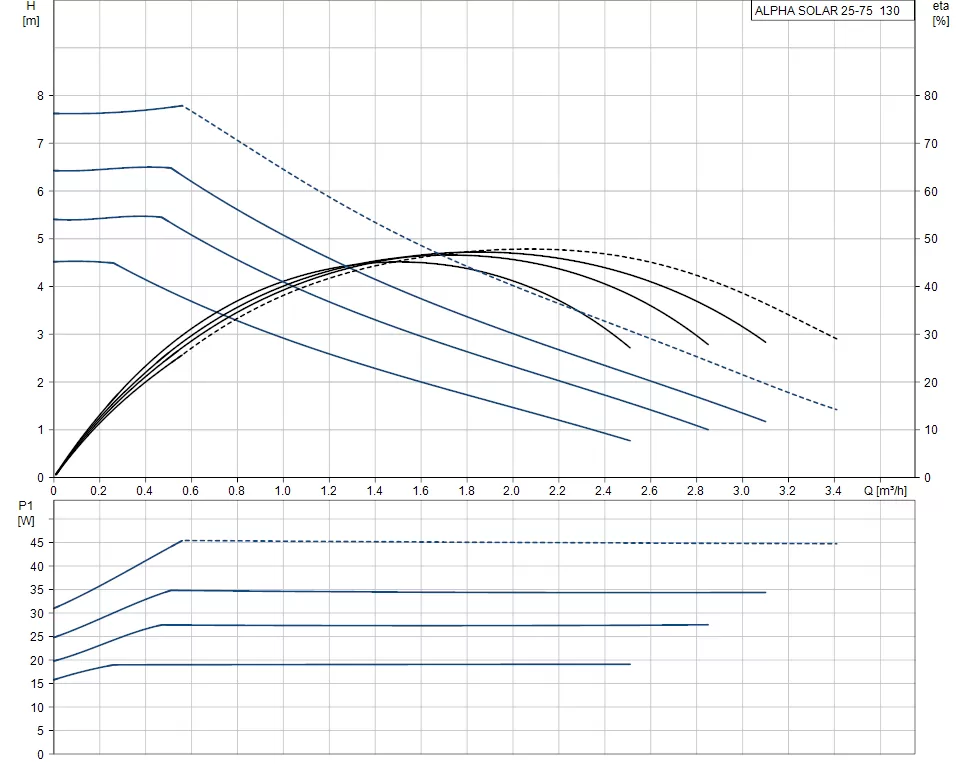 Циркуляционный насос Grundfos ALPHA SOLAR 25-75 180 предназначен для использования во всех видах тепловых солнечных систем с любой переменной (совпавшего потока) или постоянной скорости потока. ECM (электронно-коммутируемого двигателя) Насосы высокого КПД, такие как альфа солнечная энергия, не должна быть регулируемой скоростью с помощью внешнего регулятора скорости переменного или пульсирующего напряжения питания.