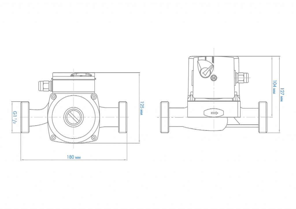 - Установочный размер между присоединительными фланцами — 180 мм.